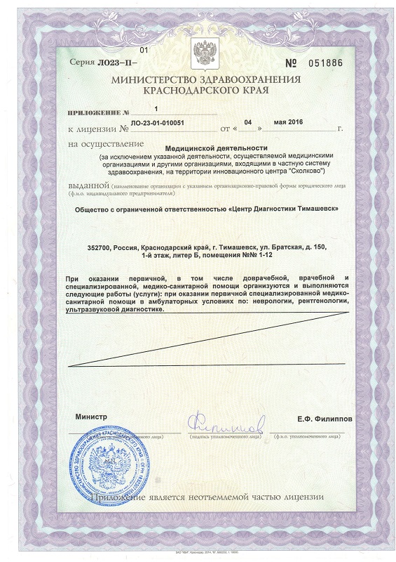 Приложение к лицензии